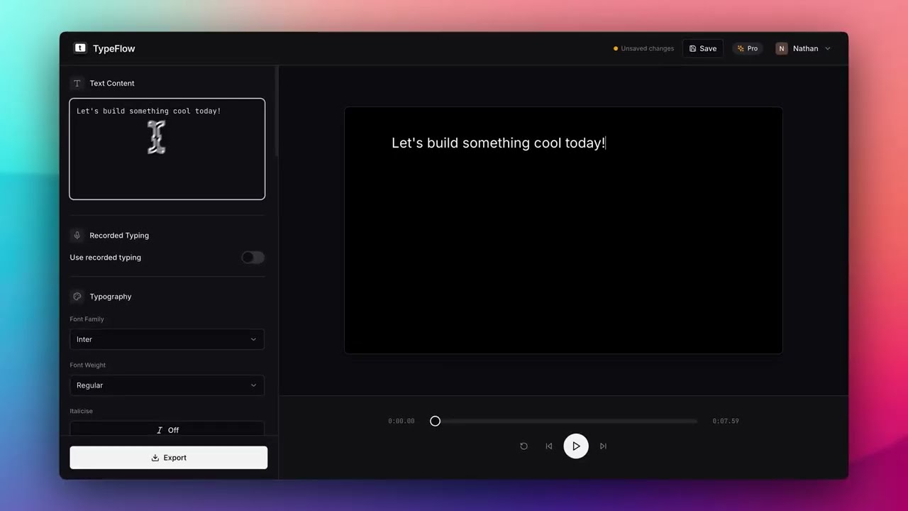 TypeFlow lets you create and export typing animations in seconds.